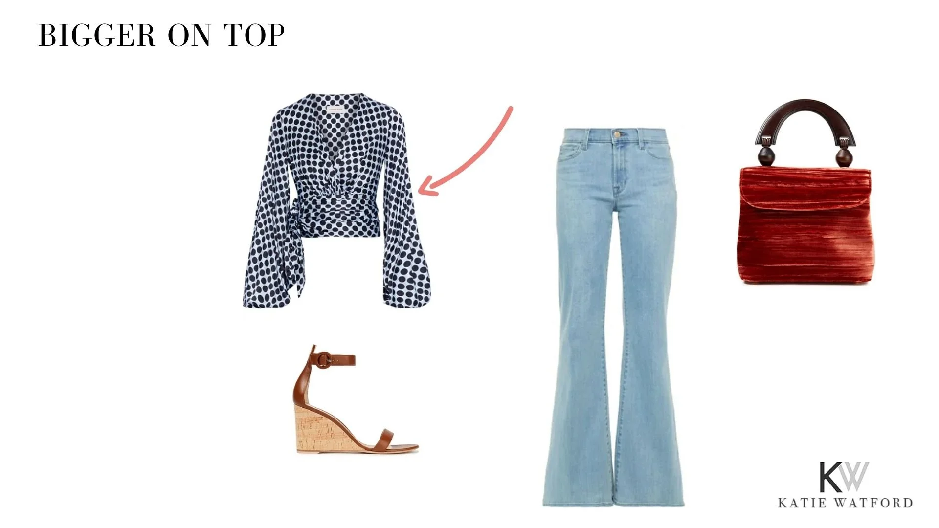 KW NOTE: A fabulous options for styles of tops are items that have a build in belt such a wrap top. Make sure to balance the bottom with a boot-cut or flair jean