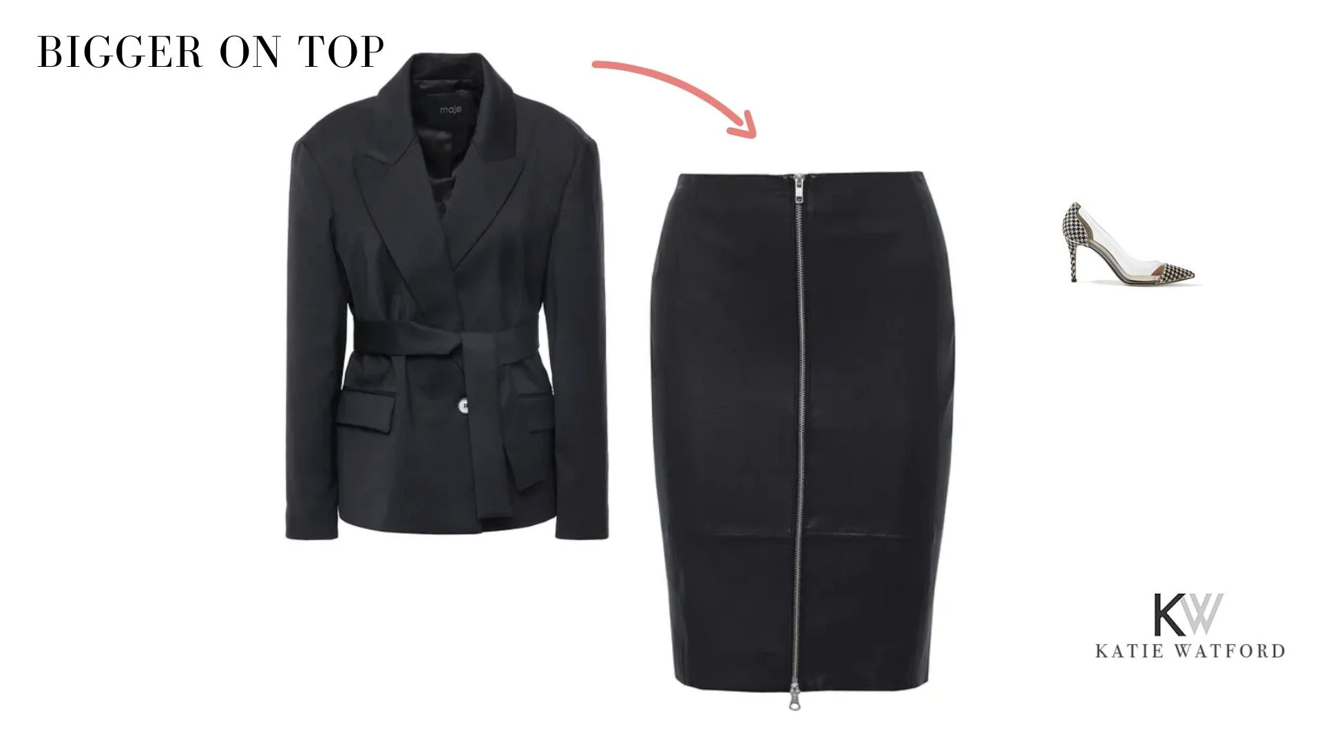 KW NOTE: If the skirt has vertical lines it will also help draw the attention downward and create a lengthen effect.